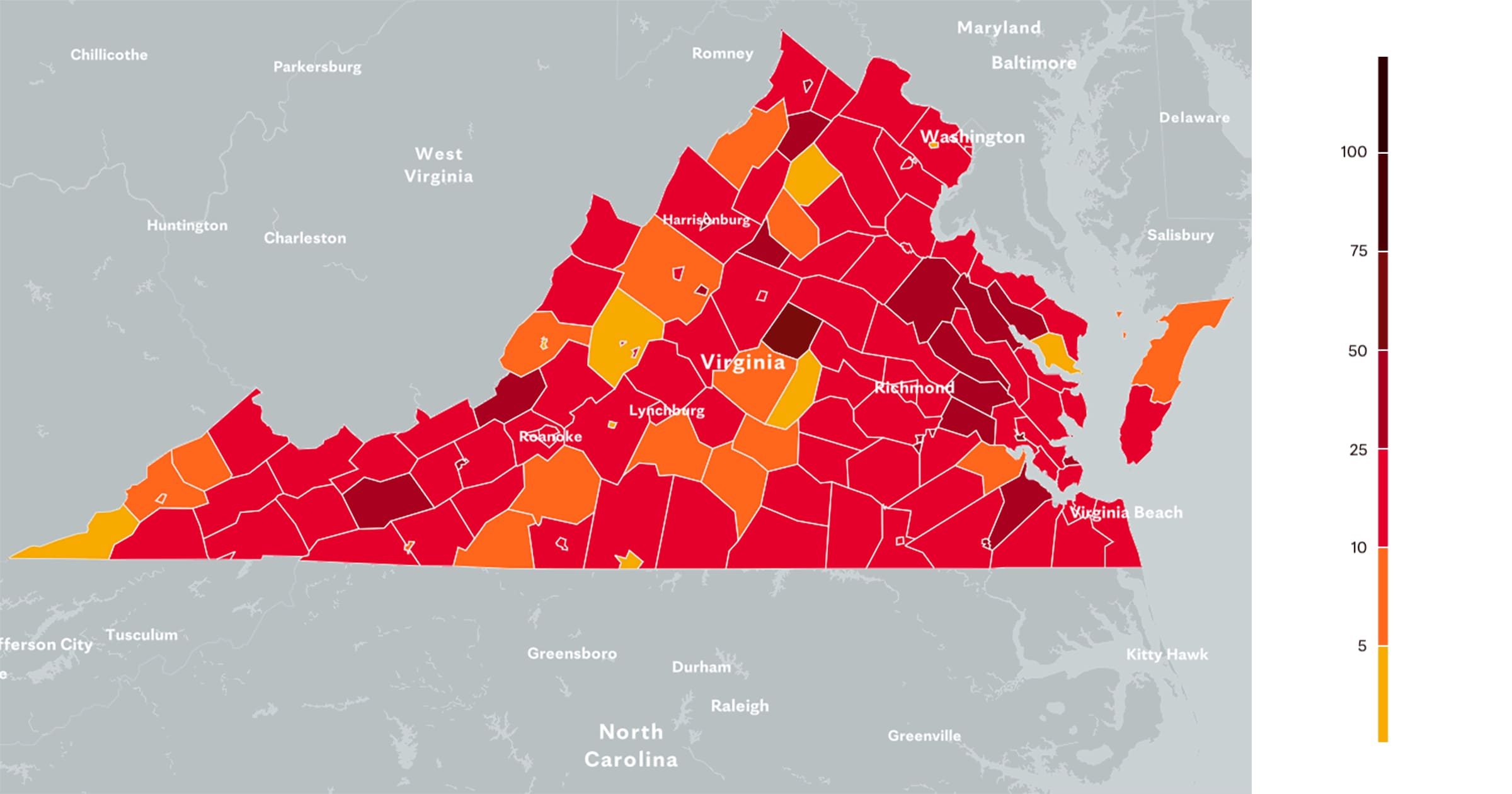 Virginia Covid 19 Map Tracking The Trends